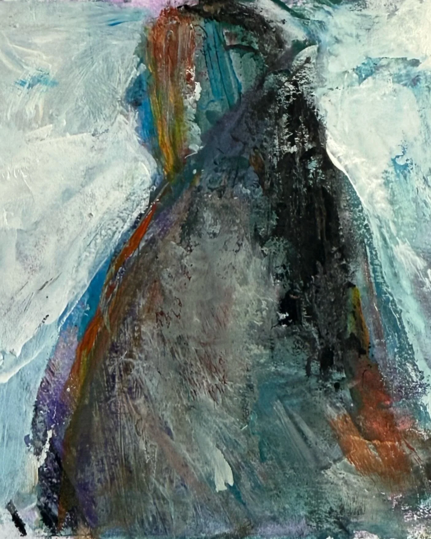View fullsize ‘Flight’ small acrylic on card #smallpaintings #acrylicpainting #originalartforsale #artfromthesubconsciousmind #intuitiveart #flight #decalcomania