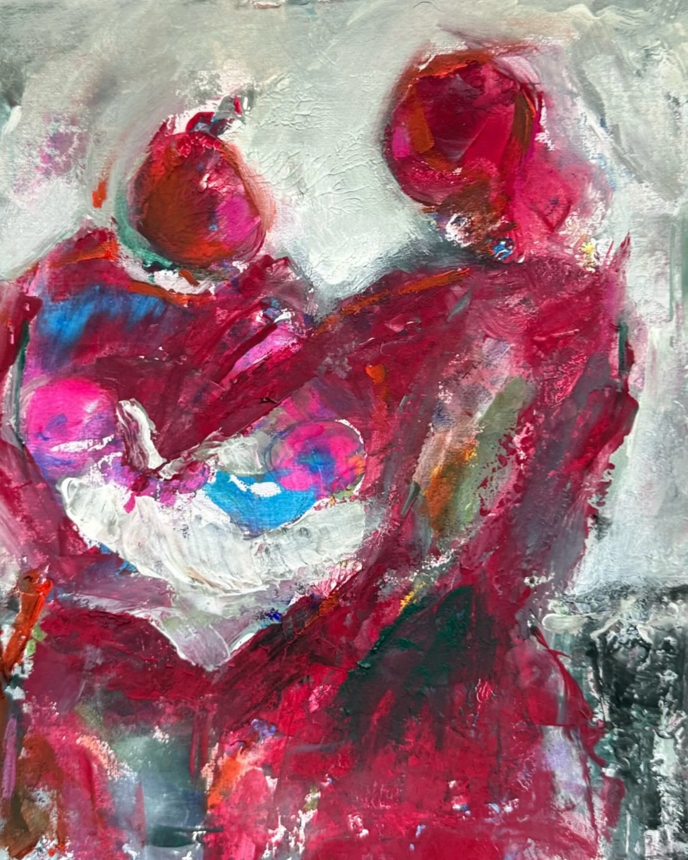 View fullsize ‘Brigid’s blessing,twice given’ acrylic on paper 23 x 23 cm  #originalart #acrylicpainting #paintingonpaper #childbirth #newborn #twins #neonatalperiod #artforsale