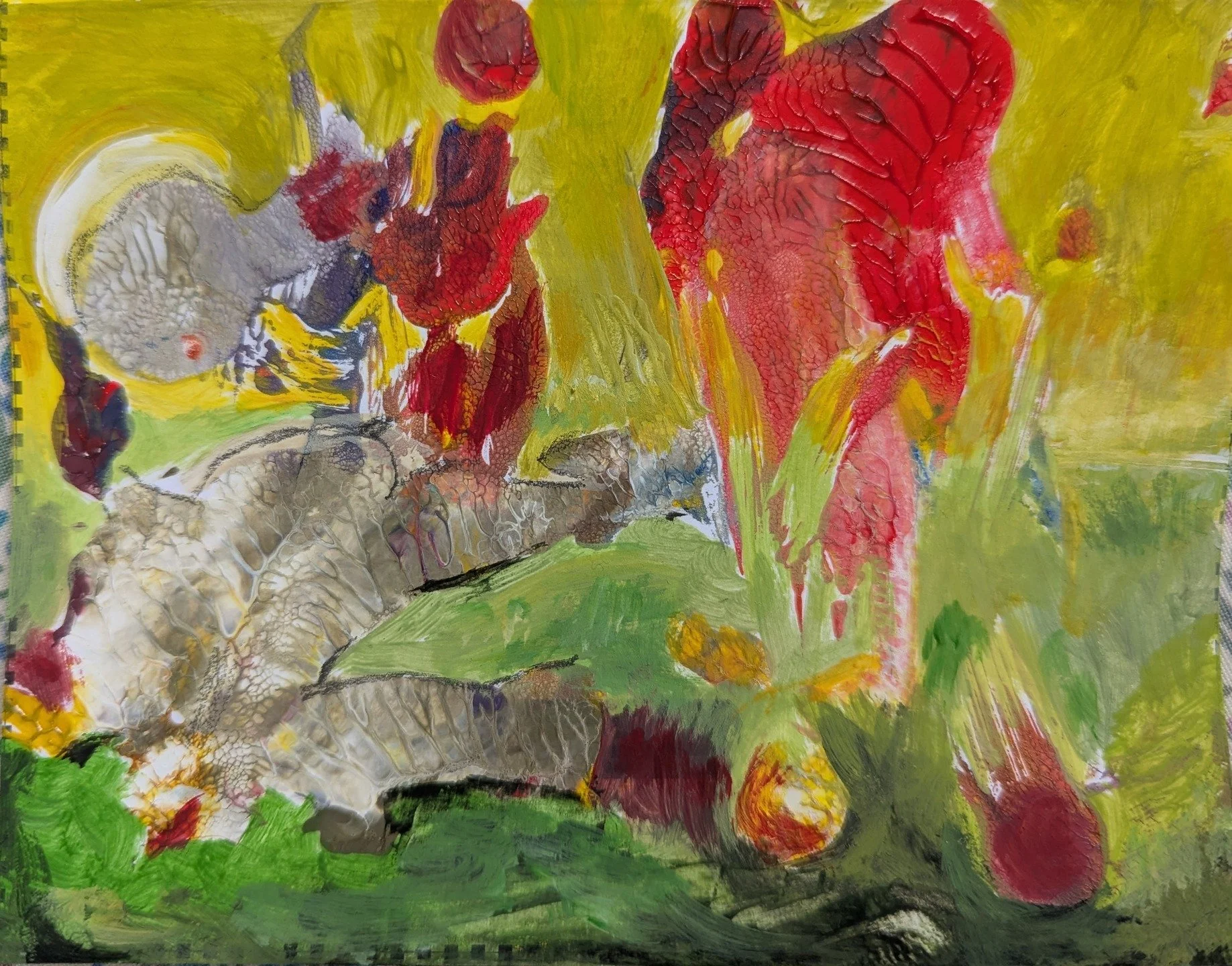 View fullsize ‘Support from a spirit animal’ small acrylic on card 14.8 x 10.5 cm #originalart #smallpainting #acrylicpainting #artfromthesubconscious #intuitiveart #decalcomania #artforsale #spiritanimal
